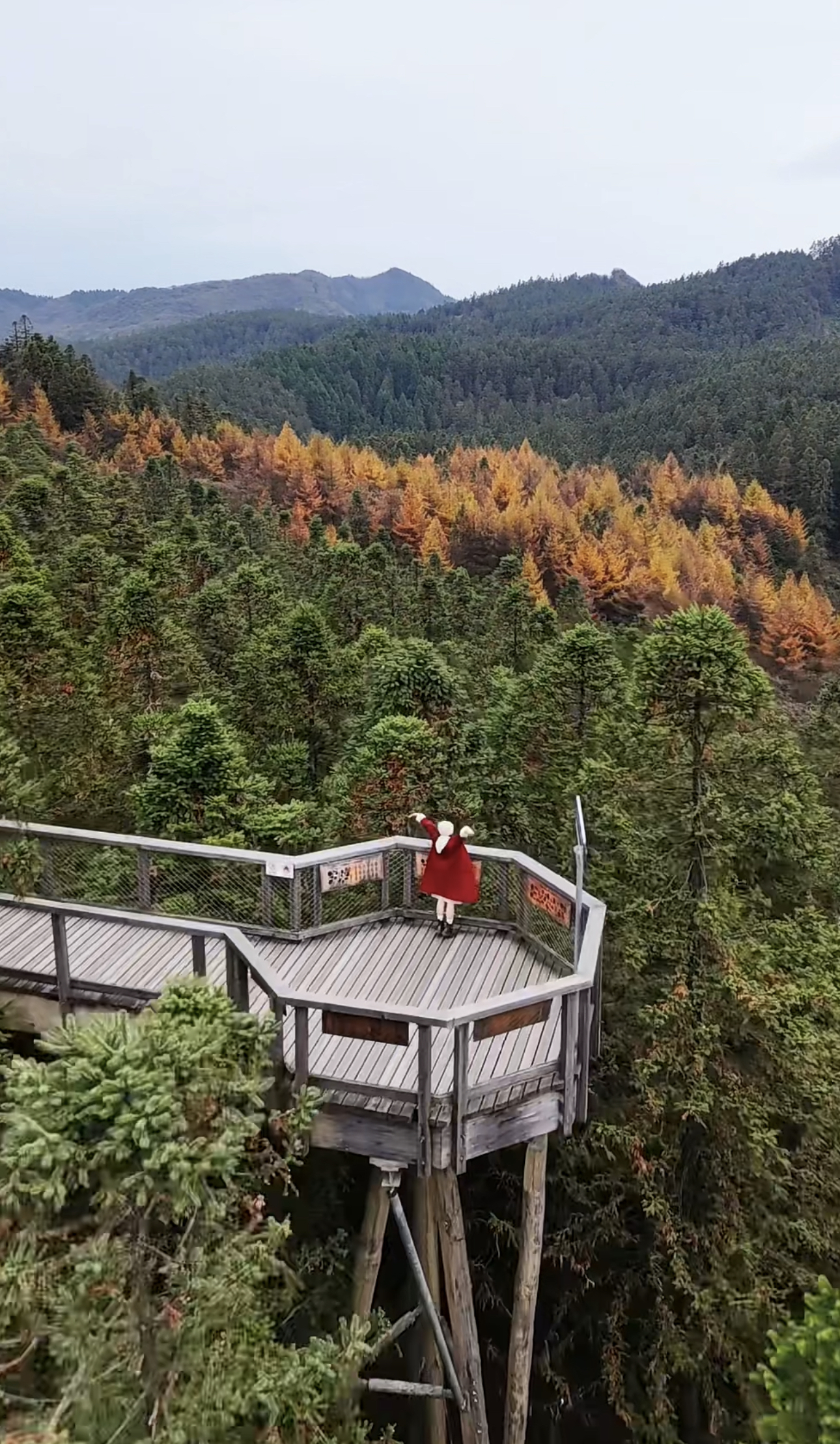 从另一个维度感受仙女山之秋——踏上“树顶漫步”。行走于凌空栈道,穿梭在彩林之巅,俯瞰金黄与绯红交织的林海,与掠过枝头的鸟儿并肩。
