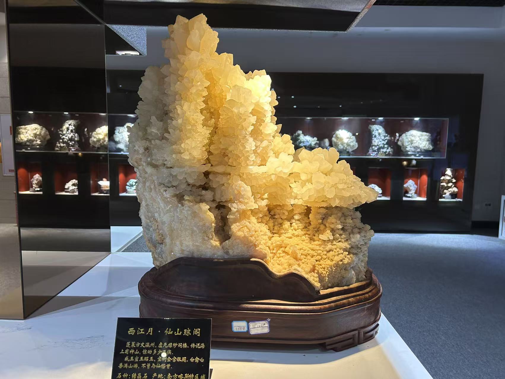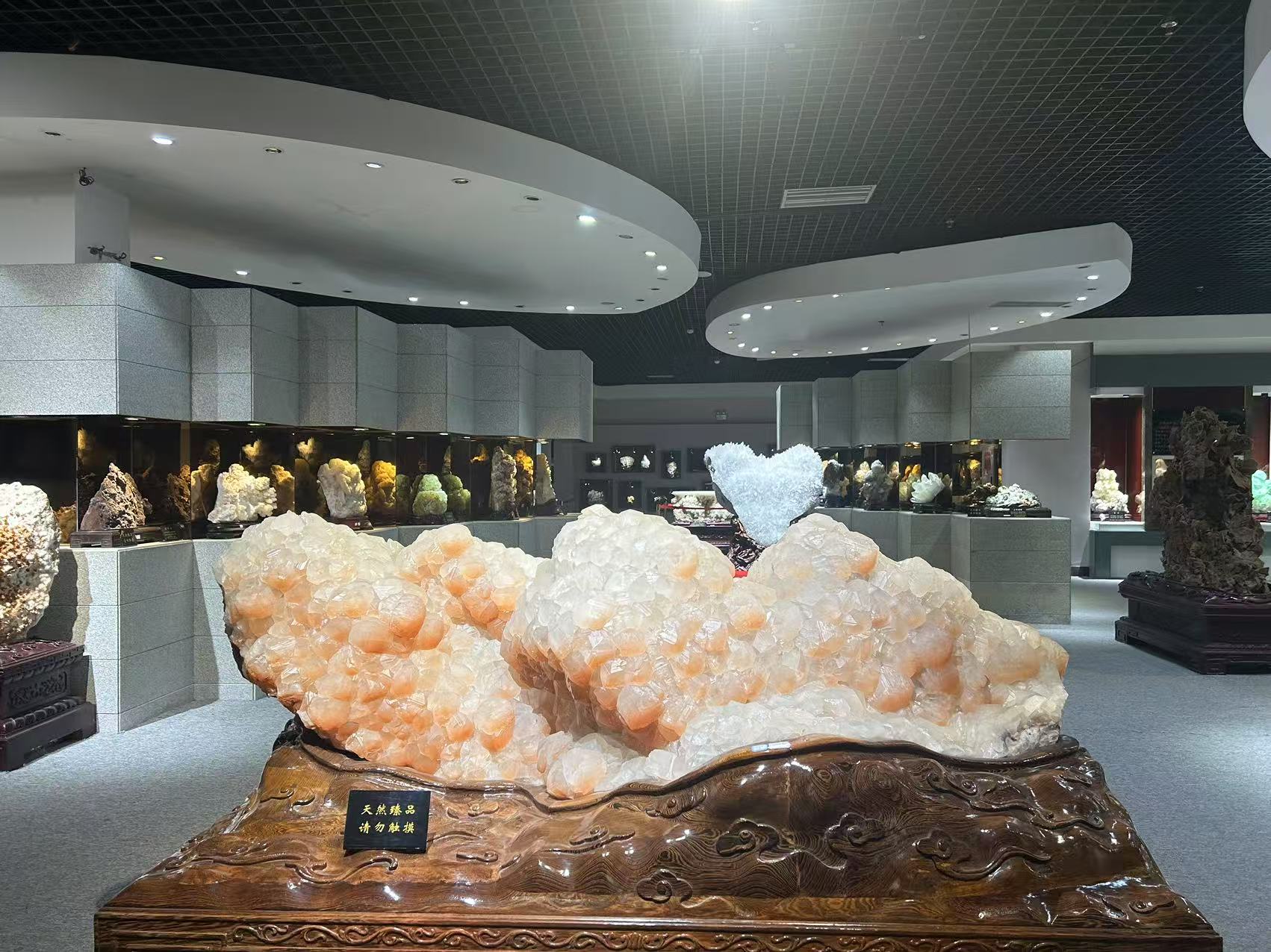 璀璨晶花展厅:展出了各种天然的矿物宝石,有绿宝石之王的祖母绿,有宛如发丝柔柔缠绕的红发晶、有神似神州华夏缩影的中华石(水晶),有唯美恒久的沙漠玫瑰石,有象征永恒爱情的三生石,这一枚枚灵秀神奇的观赏石,无不是大自然的神来之笔,无不展现中华大地地质瑰宝的无穷魅力。