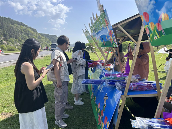 现场设置的“旧物换新鸢”环保驿站前排起长龙,游客用矿泉水瓶即可兑换限定款风筝,让春日浪漫与绿色理念共同翱翔。游客还可通过关注、打卡武隆景区官方小红书或抖音账号,免费领取精美风筝,将春日的美好亲手放飞。现场热闹非凡,欢声笑语回荡在草原上空。