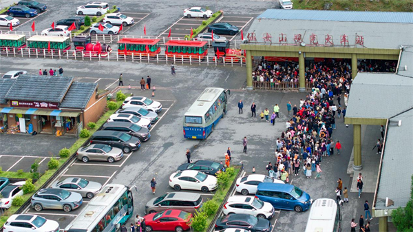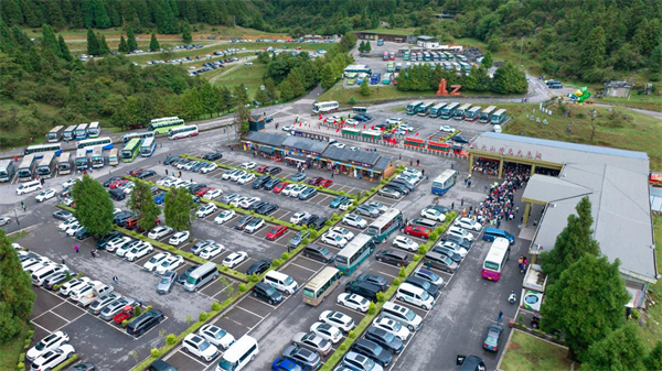 面对如潮的客流,武隆景区在服务保障方面做足准备。在交通疏导上,警察、特警、交巡警全员上岗,在交通要道节点、停车场等地耐心引导车辆。为应对车辆增多的情况,景区设置多个临时停车场,提供充足车位,并通过合理规划停车区域,使车辆停放井然有序,形成整齐的“方阵”,让游客停车便捷又安心。