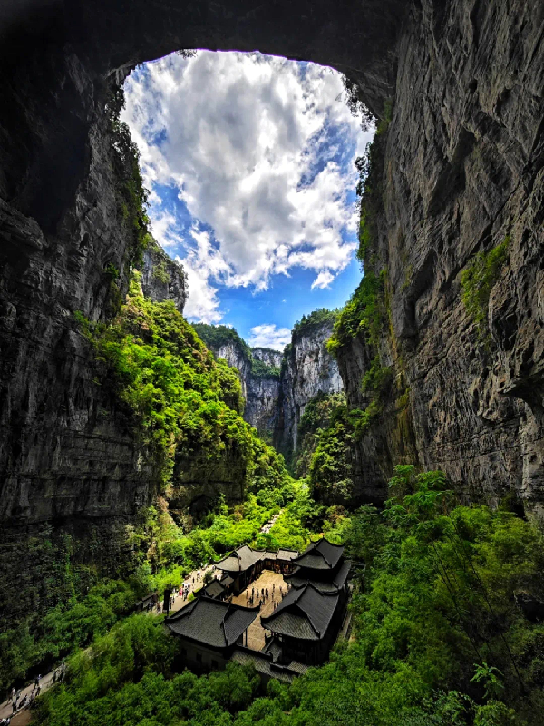 天生三桥,远观,山是一座桥;近看,桥是一座山。由天龙桥、青龙桥、黑龙桥组成,是世界规模最大、最高的串珠式天生桥群,以其独特的喀斯特地貌和壮丽的自然风光被誉「地球上的仙境」。