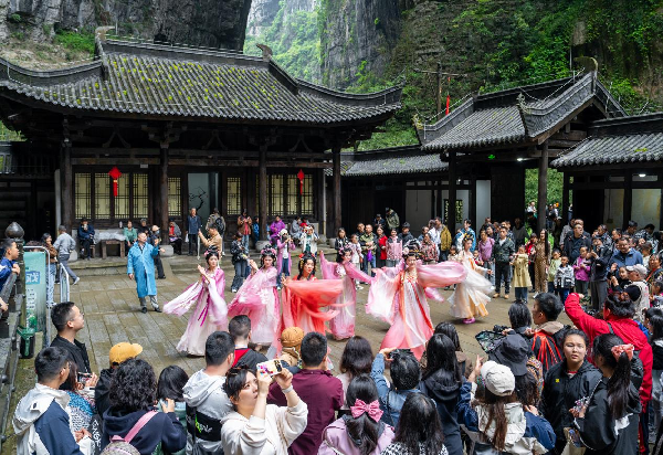 这个周末,放下喧嚣,走进武隆喀斯特秘境。在天生三桥的奇峰异石间,听风与歌对话;于天福官驿的古韵悠长里,邂逅跨越时空的仙音。让国风旋律唤醒沉睡的山水之灵,共谱属于仙境的诗篇。