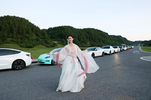首日,特斯拉车队驶入“东方瑞士”仙女山国家森林公园,海拔1900米的“南国第一牧原”上,流线型车身与碧绿草原共绘赛博仙境。女性车主们身着国风服饰,以科技座驾为背景,定格“未来感”与“自然野趣”的绝美碰撞。
