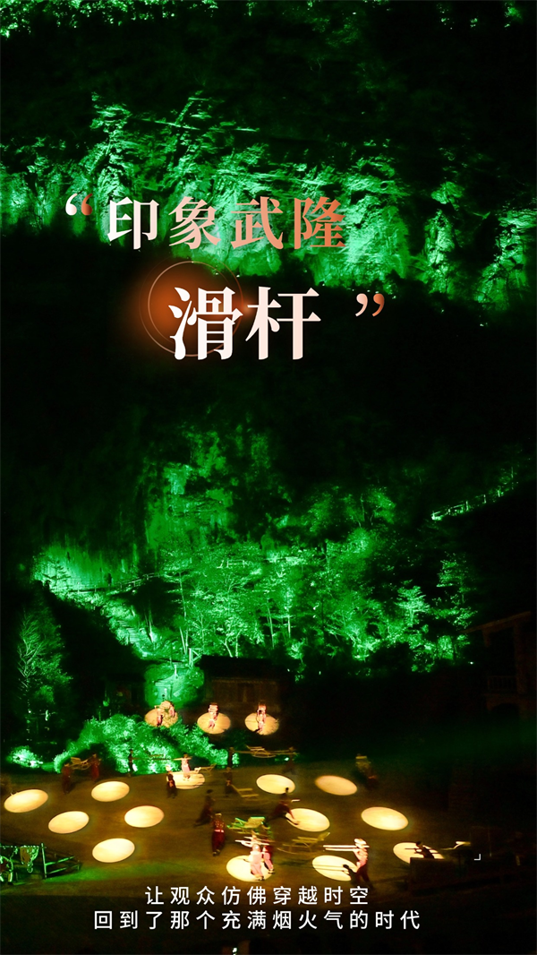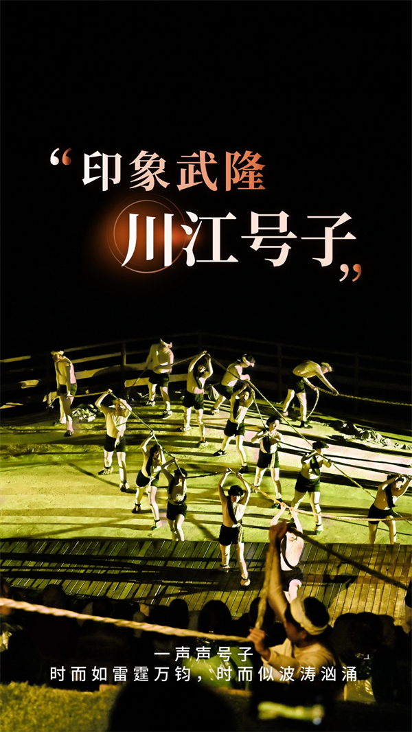 从2012年第一次拉开帷幕,《印象武隆》就把“川江号子”的灵魂,深深融进了武隆天坑的奇绝风光和巴渝文化的厚重故事里。想象一下:盛夏酷暑?寒冬凛冽?星光满天的夜晚?还是细雨蒙蒙的傍晚? 无论什么天气,《印象武隆》那嘹亮的号子声从未缺席,纤夫们坚毅的身影始终矗立在这山水舞台之上。