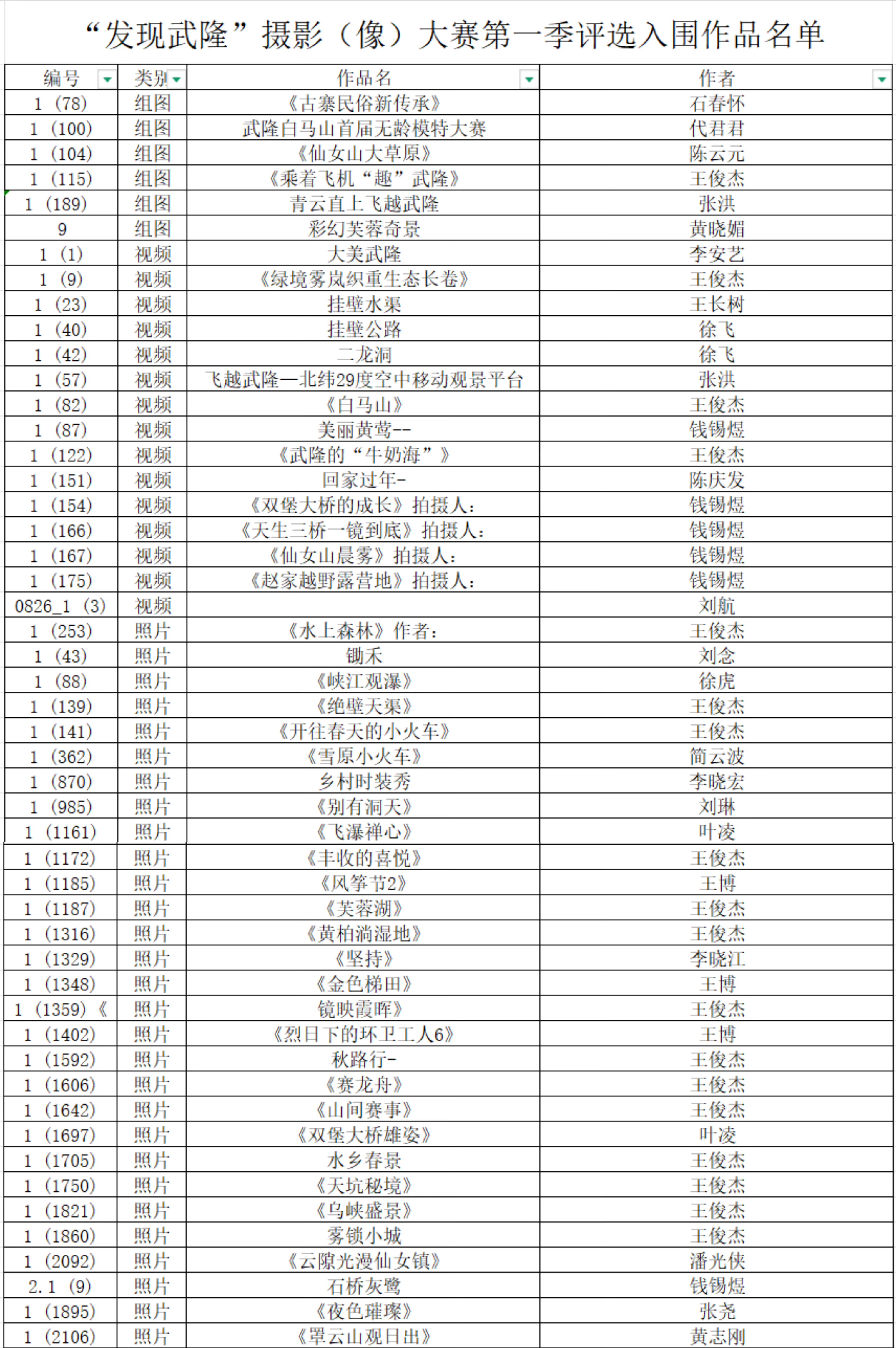 附件:“发现武隆”摄影(像)大赛第一季评选入围作品名单
