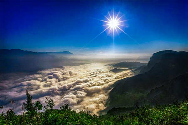 白马山宛如梦幻之境,在云海落日中俯瞰乌江,仙气值拉满!