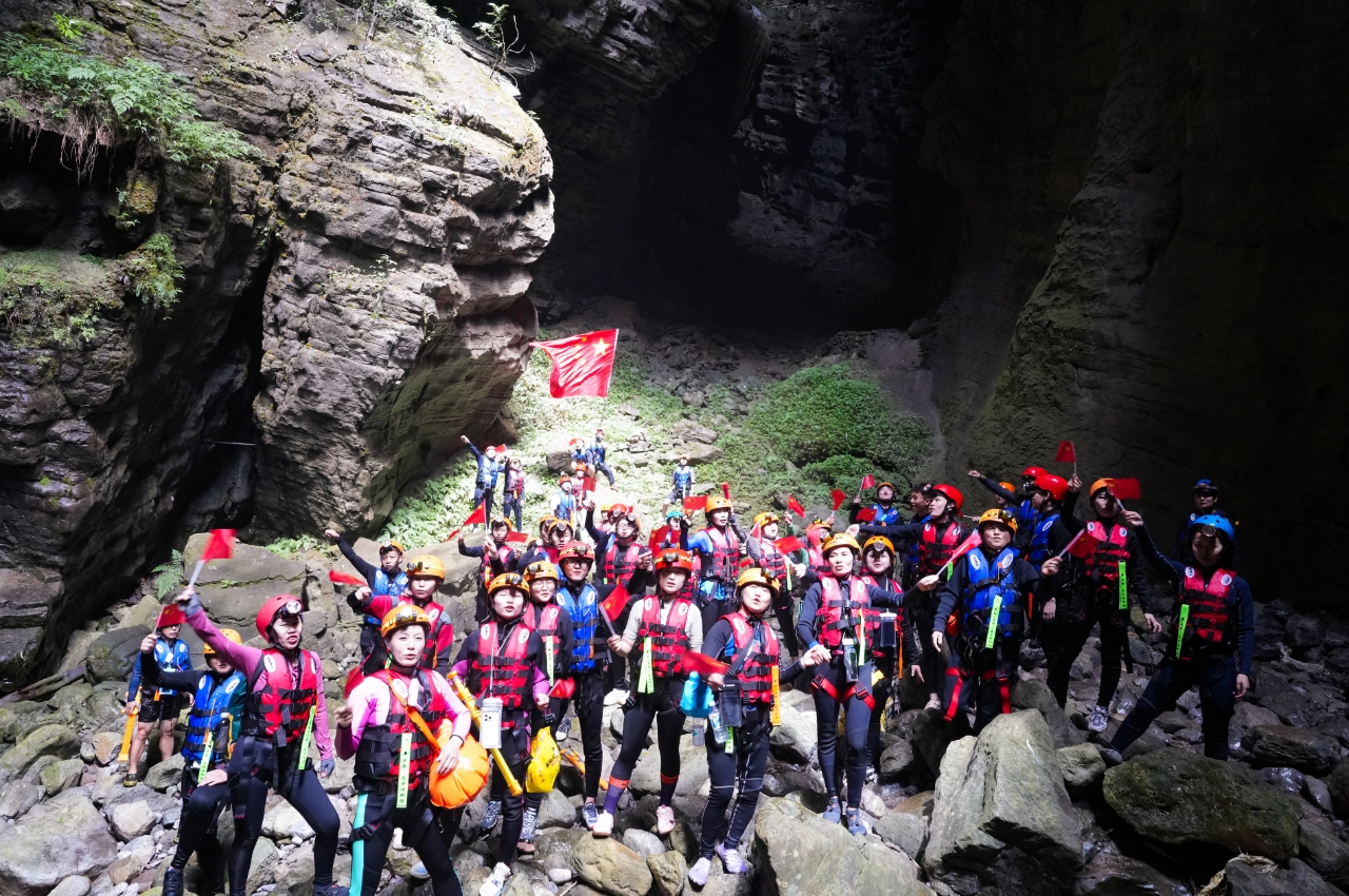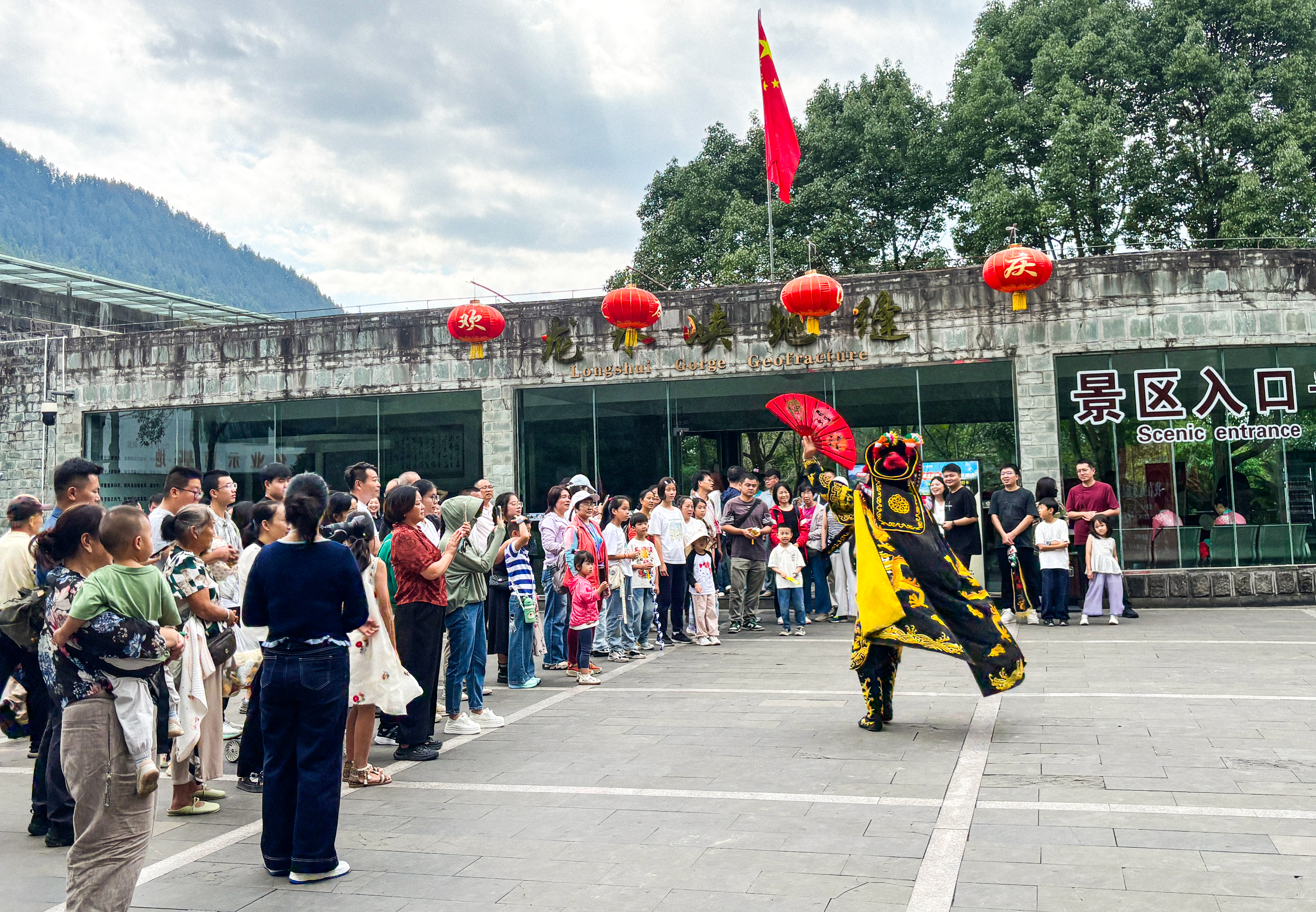 与此同时,龙水峡地缝的精彩也在延续!继昨日(10月5日)“地心寻宝”大冒险的成功举办,今日的“国潮起舞”系列活动正同步上演。当传统舞蹈邂逅亿年地质奇观,一场动人心魄的视觉盛宴正在地心深处华丽呈现。