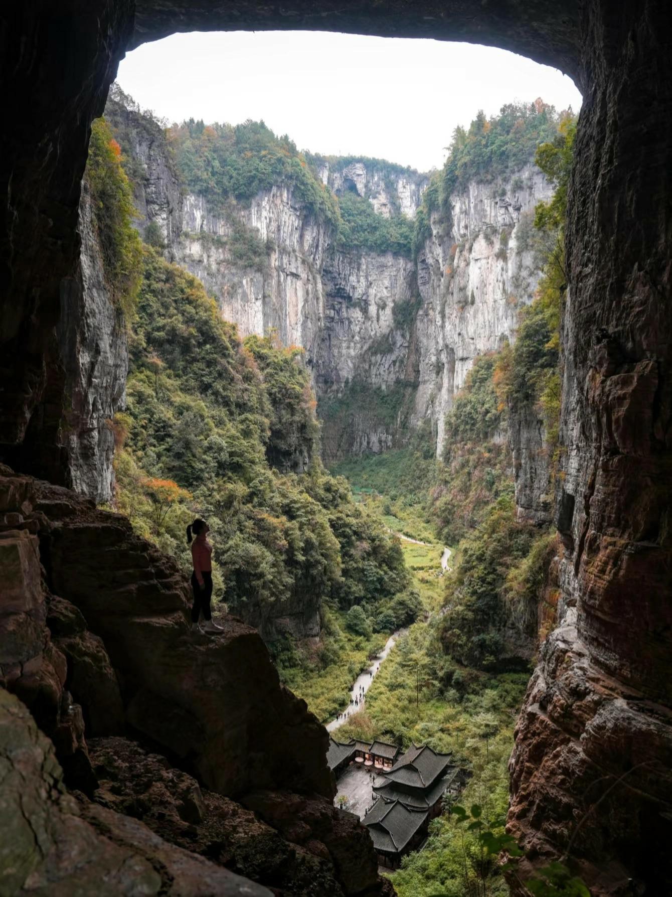 傍晚在《印象武隆》的实景舞台上,感受天生三桥间回荡的千年回响。