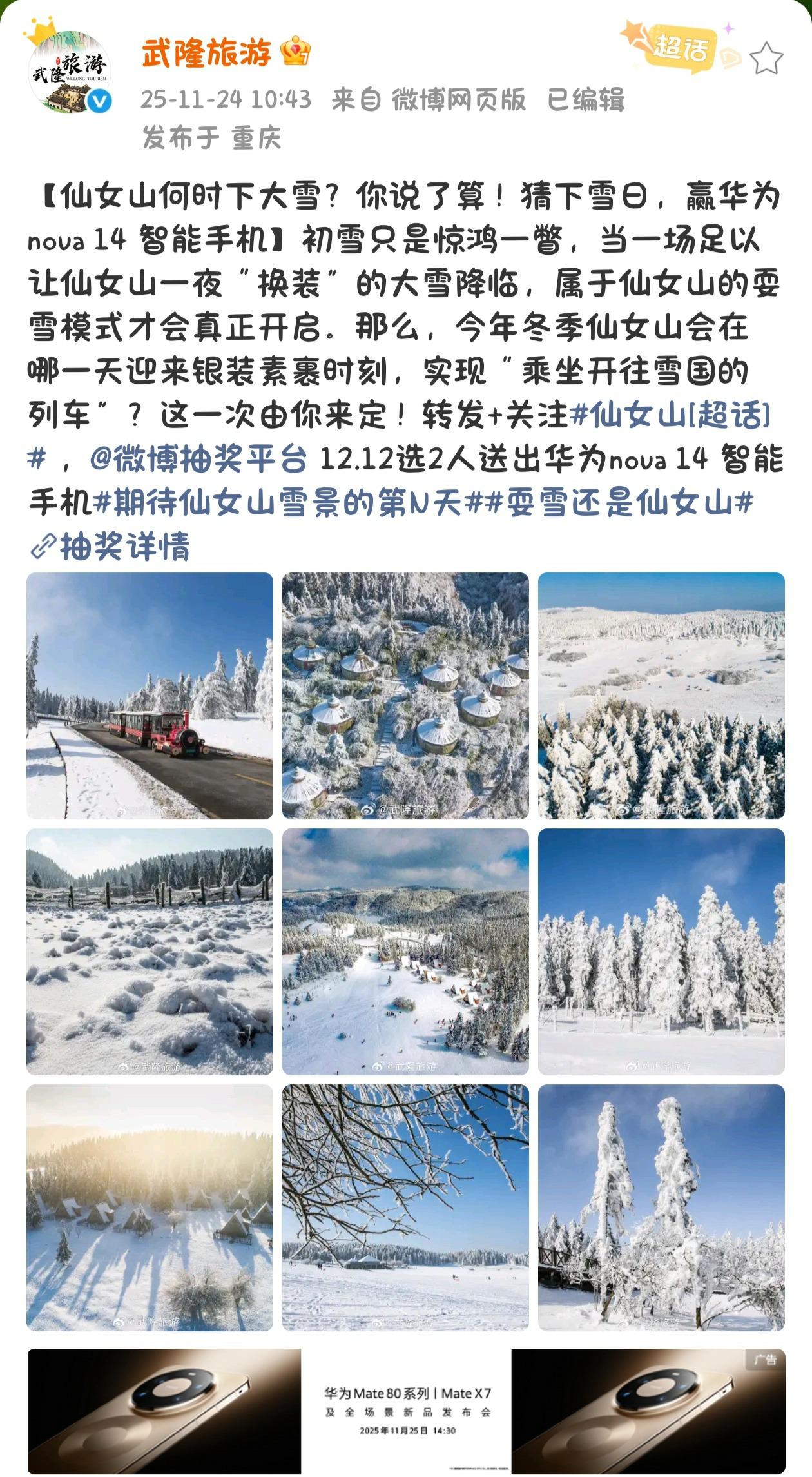 说不定你就是那个被武隆偏爱的 “预言家”,带着华为手机 + 文创牌,在仙女山的大雪里赴一场好运之约~