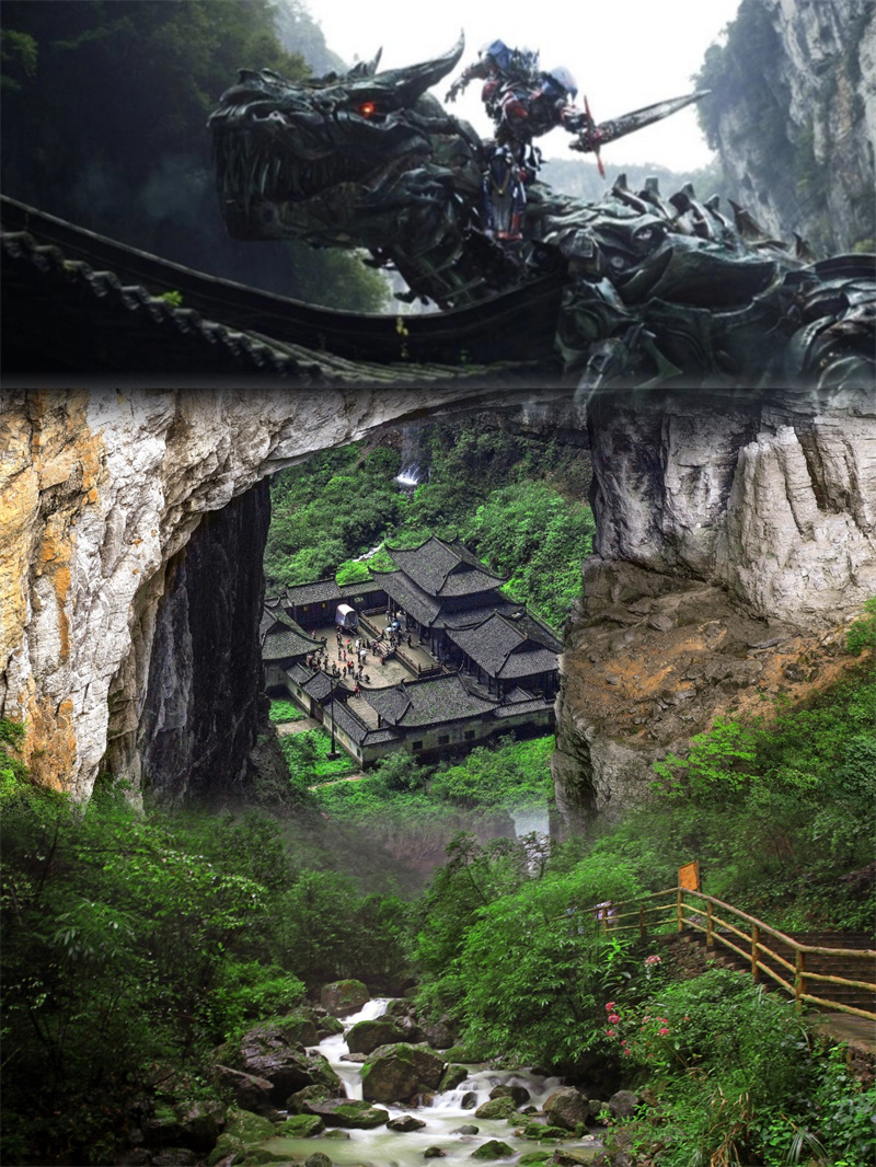 2014年,《变形金刚4:绝迹重生》全球热映,当镜头掠过“天生三桥”的天龙桥时,观众惊呼声四起:那座横跨天坑的天然石拱,竟成了汽车人与霸天虎的战场!剧组耗时3个月搭建特效棚,却舍不得删减天生三桥的原生镜头——1000米深的天龙天坑、200米高的石拱跨度,比电影特效更震撼的是大自然的鬼斧神工。