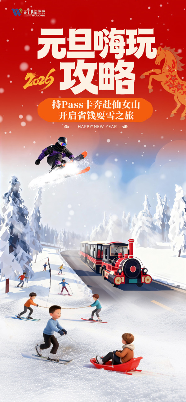 12月31日,仙女山被大雪装点,银装素裹,宛如梦幻童话世界,元旦佳节正是玩雪好时机。更棒的是,2026年武隆旅游通行Pass卡将于1月1日全新上线,种类丰富,覆盖多个热门景区,且优惠力度空前。元旦来武隆,让你省钱又尽兴,不见不散!