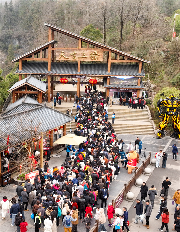 马年伊始便火力全开!2月18日(大年初二),武隆景区接待人次与收入双双创下历史新高,旅游人气爆棚。
