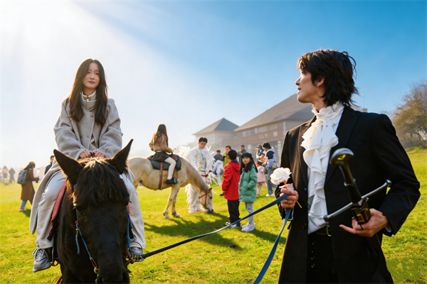 遇福:仙女山上,白马王子玫瑰赠佳人,黑马骑士互动送欢笑,浪漫满分。