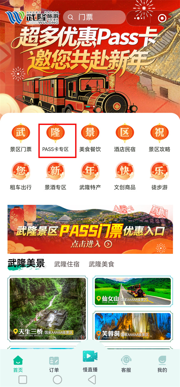 计划前往武隆游玩的同学请注意!你可以通过搜索“武隆景区官方平台”微信或支付宝小程序,首页找到“PASS卡专区”,点击进去即可选择购买。