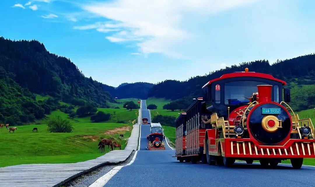 这里不仅有连绵起伏的高山草原,更有你久违的自由呼吸。你可以坐上复古的小火车,慢悠悠地驶向春天深处;也可以脱下束缚的高跟鞋,在柔软的草甸上肆意奔跑。