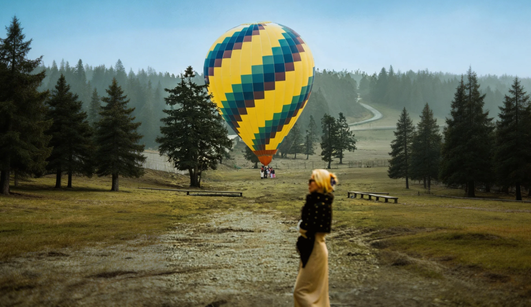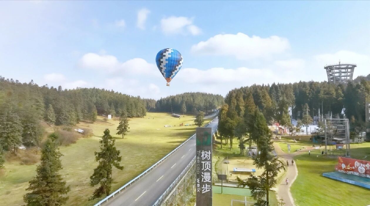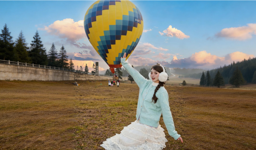更令人心动的是,色彩斑斓的热气球正缓缓升空,点缀在蓝天绿草之间。你可以登上热气球,随着微风缓缓上升,俯瞰整片草原的辽阔与壮美。当热气球升至高空,远山如黛、近草如茵,整个世界都在你脚下铺展开来——这一刻,你就是这片天空的女主角。
