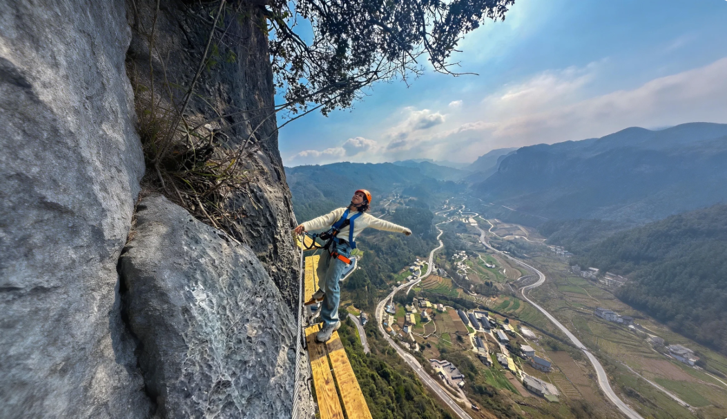 踏上长空栈道征服白马山的险峰,