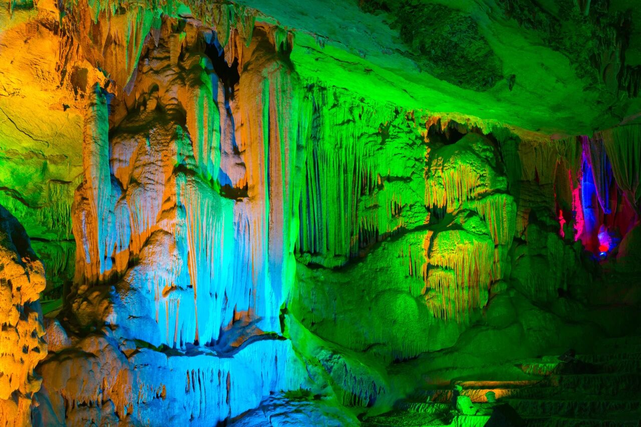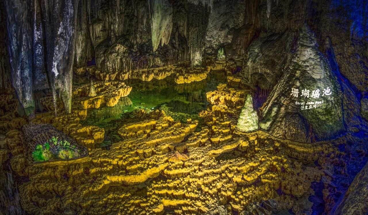 巨幕飞瀑雄踞芙蓉洞奇观之首,与珊瑚瑶池、犬牙晶花、石晶花、石笋等众多沉积形态共同构筑起令人惊叹的世界级地质景观。这座形成于120多万年前的洞穴,汇聚了70多种沉积物类型,是全球种类最丰富的洞穴之一。