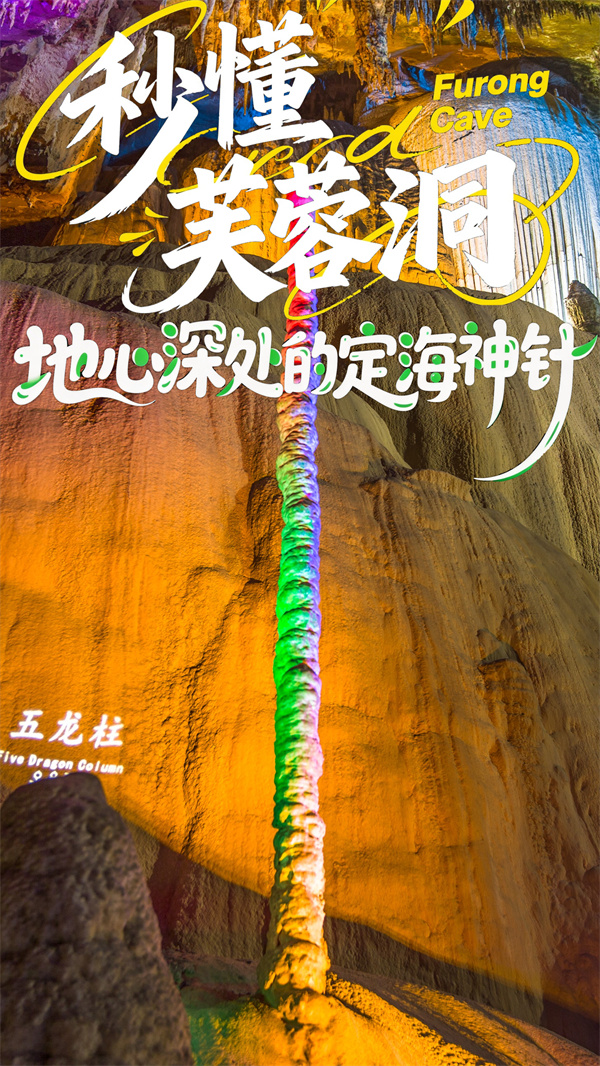 在亿万年的时光沉淀中,大地深处藏着一座地下艺术殿堂——芙蓉洞。这里钟乳林立,石幔如帘,而其中格外引人注目的,莫过于那根被誉为“定海神针”的传奇石柱——五龙柱。